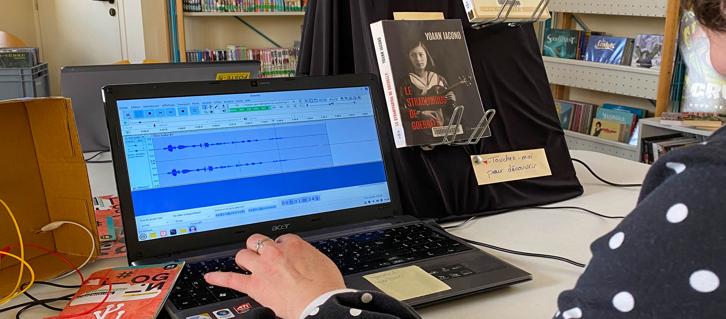 Les équipes de l’Espace Numérique et de la médiathèque ont, à cette occasion, organisé deux ateliers. Le premier était dédié aux adultes du club de lecture. Il portait sur l’enregistrement, et l’intégration sur une borne d’écoute, de résumés de livres travaillés et lus par les participants. Le second était proposé aux enfants qui avaient pour challenge d’inventer, d’écrire et d’illustrer une histoire destinée puis de l’enregistrer pour l’intégrer sur une borne d’écoute. A cette occasion, les jeunes ont fait preuve d’une belle imagination, mettant en scène des univers très différents où les héros sont des fées, des astronautes ou des enfants …
