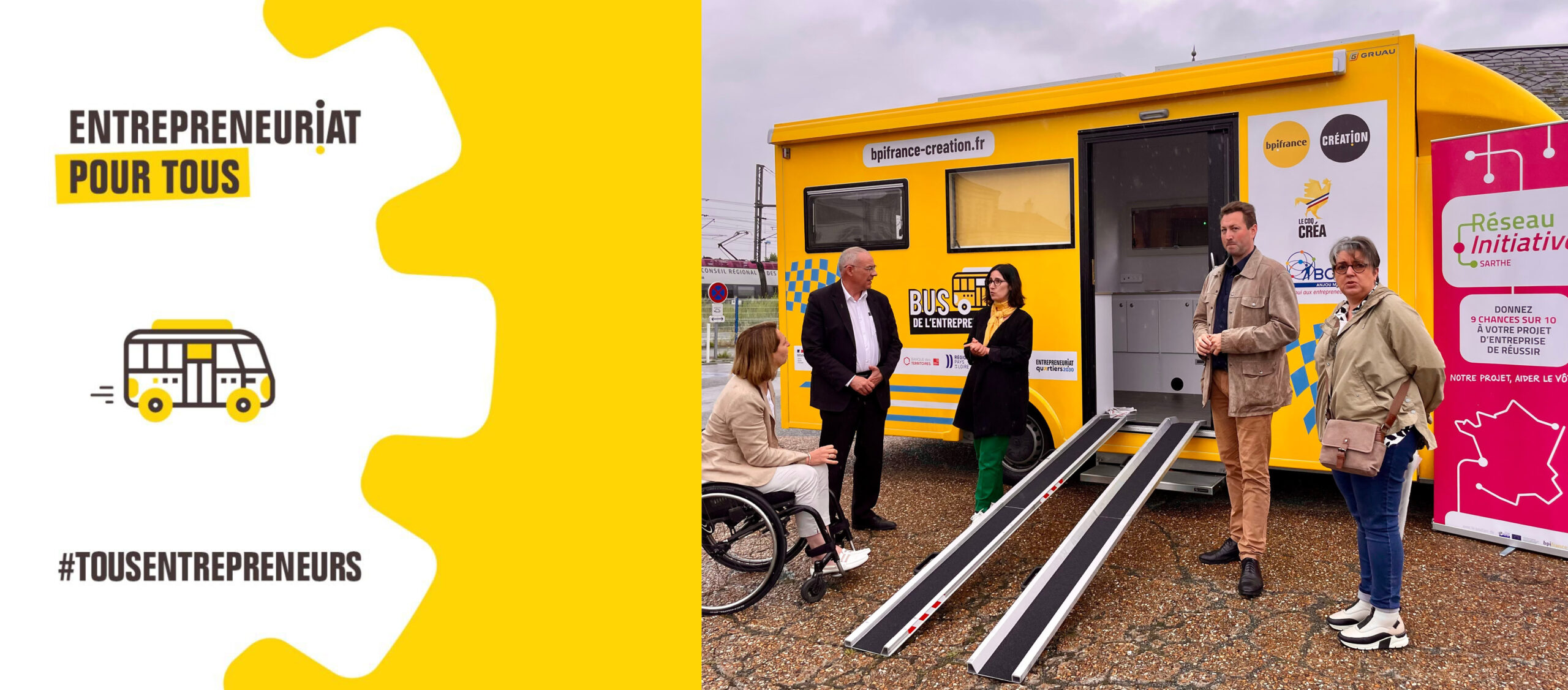 Ce service de proximité, mis en place par BPI France Création et piloté en Pays de la Loire par l’association BGE Anjou Maine, est destiné à accompagner les habitants ayant des projets de création ou de développement d’entreprise. À bord de ce bus, les porteurs de projets pourront dialoguer avec des experts économiques qui les aideront à identifier leurs besoins, apporteront des réponses initiales et les orienteront vers les interlocuteurs appropriés. Ils recevront également un soutien pour monter leurs dossiers techniques et financiers.